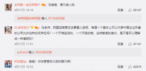 马云的微博评论区也一度沦陷。