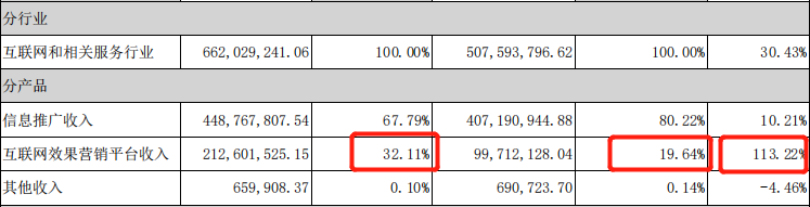 柒财经旗下柒闻网注意到,信息推广、互联网效果营销平台基本上是值得买全部业务。