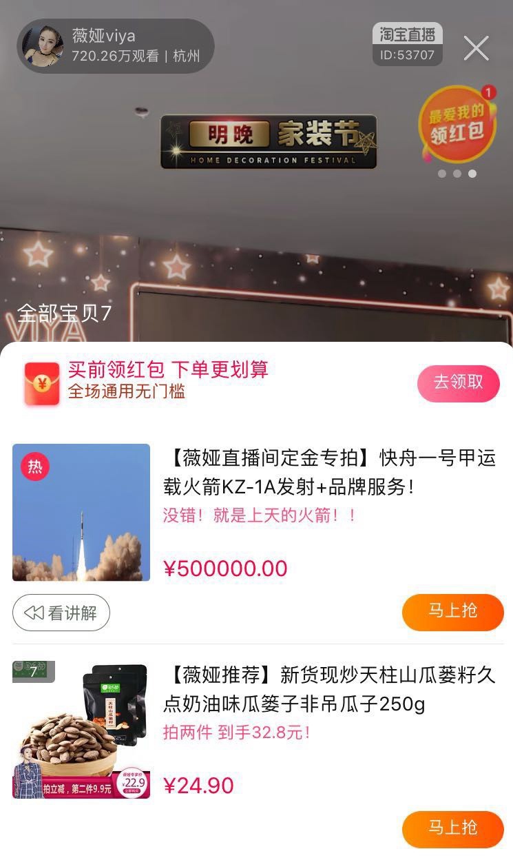 薇娅正常直播的一天:4000万火箭被拍