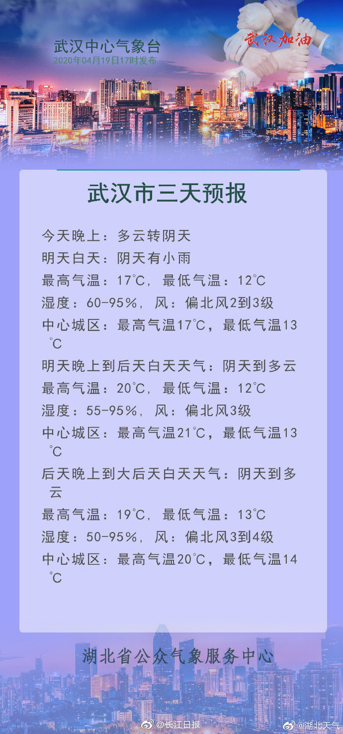 武汉天气速递 俗话说:“春天猴儿面,阴晴随时变。”晒完暖暖的阳光后,20日白天,武汉将接收一波淅淅沥沥的小雨,最高气温也会回落至17℃;而当天夜间到22日,受高空环流平直影响,降水将告一段落,但城市上空云系依旧较多,此外随着一股地面冷空气渗透南下,市内北风会略有增强,高温也会在20℃上下起伏波动。(长江日报)