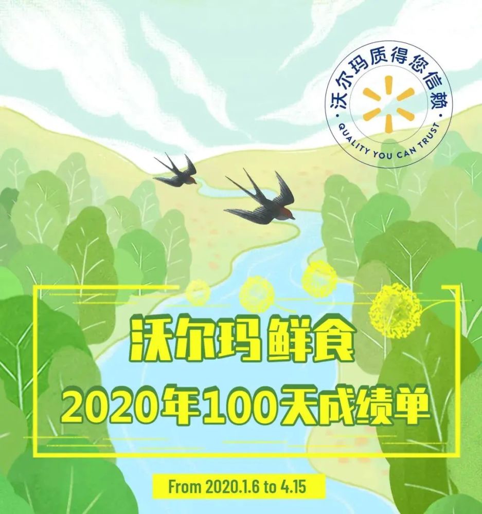 4月23日,沃尔玛发布沃尔玛鲜食2020年100天成绩单,2020年1月16日至4月15日,实现了O2O销售额同比增长近三倍,其中蔬菜线上增长超四倍;线上预包装鲜食占比超80%,线上预包装鲜食同比增长4倍,烘焙品类预包装实现100%,同比增长近2倍。