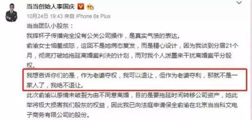 李国庆曾表明:和俞渝已分居22.5个月,要求股权平分