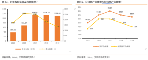 2019年公司加大回款力度,2019年末公司有息负债规模1123.21亿元,负债规模持续下降,短债占比下降12.94个百分点至29.87%,非银融资占比较去年年末的52.57%下降至24.94%,负债结构持续优化。截至2019年末,公司资产负债率83.45%,较去年末下降0.97pct,有息资产负债率36.03%,同比下降15.73pct,净负债率138.28%,下降43.94个百分点,降负债率成效显著。2019年平均融资成本7.71%,同比下降23个bp,相比同行仍然较高。2020年一季度房地产到位资金累计3.4万亿,同比增速边际提升3.7个PCT,预计2020年行业融资环境进一步改善,资金成本有望下滑,公司作为高杠杆房企代表,有望大幅受益。