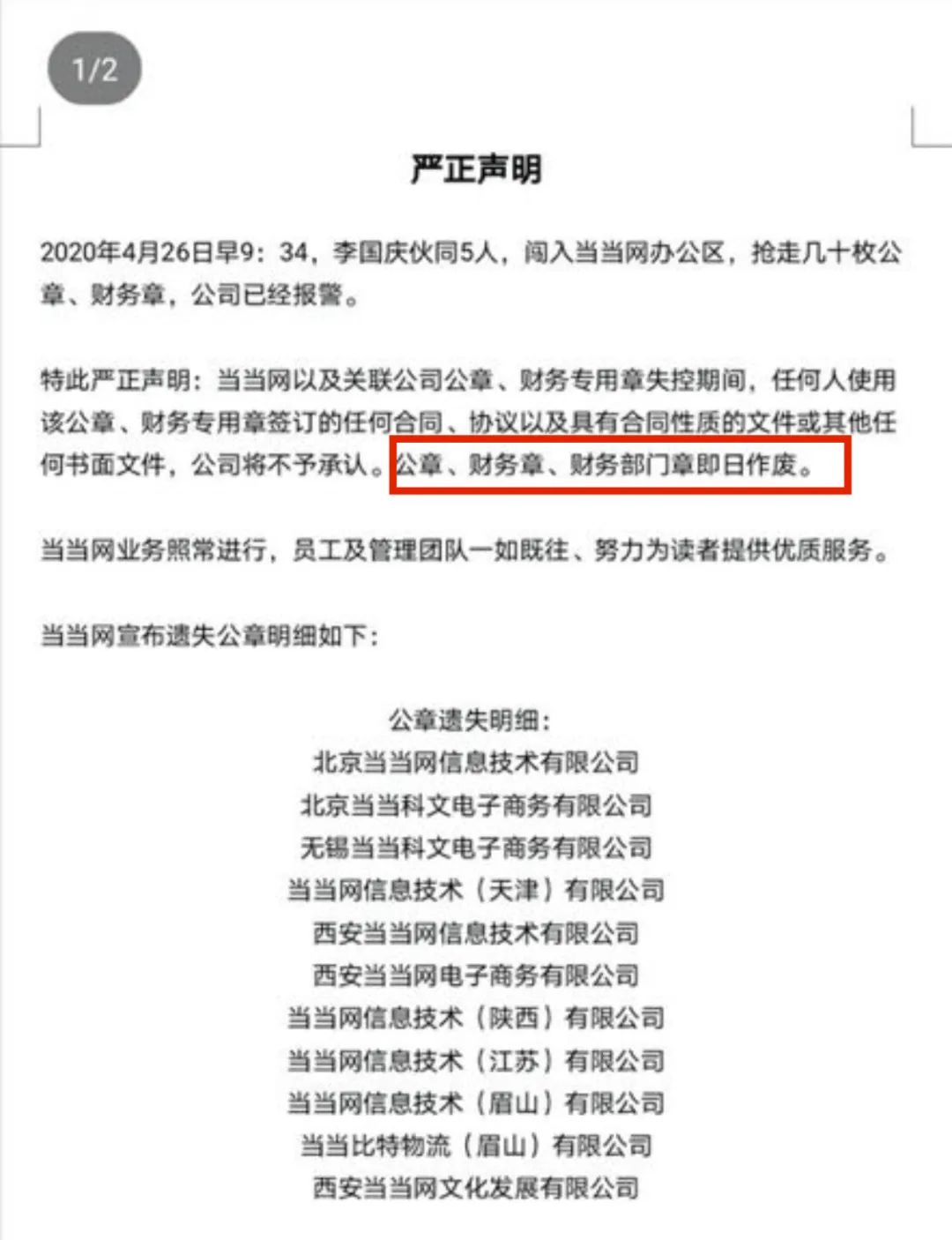 当当网表示