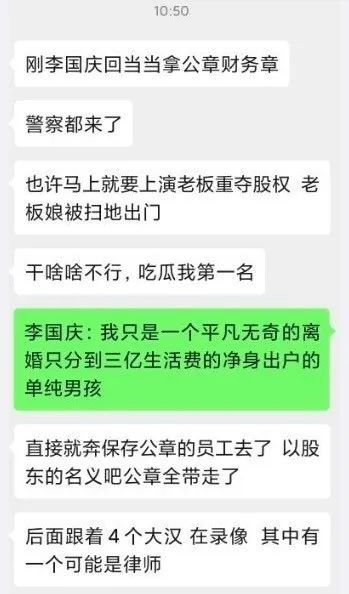 值得注意的是,跟随李国庆的,还有四个大汉,趁着俞渝还没到公司之际,到公司拿公章财务章。据悉,当当方面叫了保安上来,不放李国庆一行人出去。