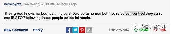 “他们的贪婪没有尽头!他们应该为自己感到羞耻,但他们太自我为中心了,不会反省的!不要在社交媒体关注这些人了!”