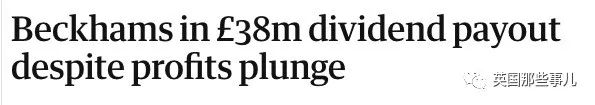“去年,尽管贝克汉姆品牌公司(Beckham Brand Holdings Ltd.)利润下降90%,但它还是给包括小贝夫妇在内的3名股东发了3800万英镑的股息”