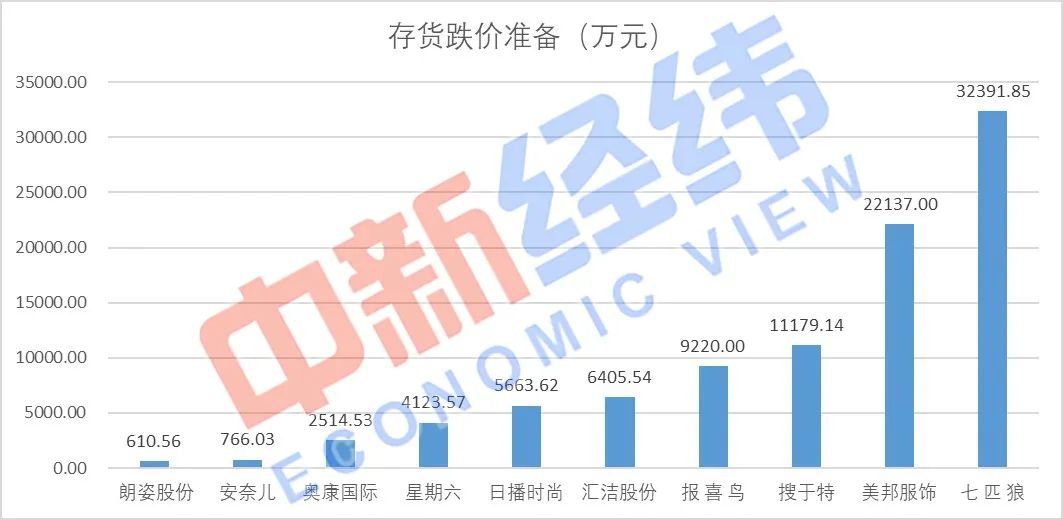 不过,无论是降价促销,还是最终退回生产厂商,都意味着原有商品价值的下降。对于服装上市公司来说,为了预防每年因为库存积压而带来的账面损失,公司会定期对库存商品进行减值测试,并相应地计提存货跌价准备来覆盖库存商品的减值损失。