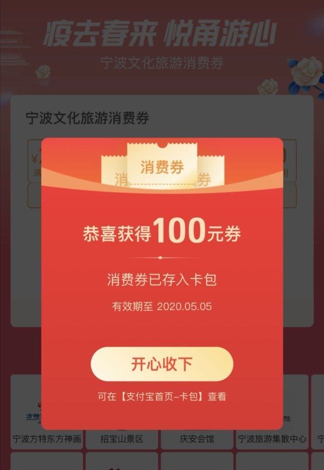 宁波市作为国家首批、浙江首个文化消费试点城市,一直以来发力供给侧、激活消费端,深挖文旅消费潜力。针对疫情防控形势持续向好、文化旅游业复苏步伐加快的实际,我市将复工复产与扩大内需结合起来,努力把被抑制、被冻结的消费欲望释放出来,把在疫情防控中催生的新型消费、升级消费培育壮大起来,使实物消费和服务消费得到回补。为此,市政府拿出真金白银,发放1500万元文旅消费券,首轮500万今晚正式发放,市民可以在支付宝客户端和宁聚、甬派两个新闻客户端上同时领取文旅消费券。