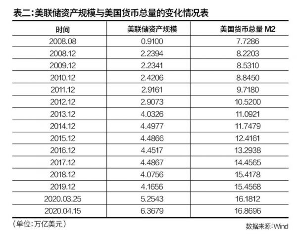 从美联储资产规模与美国货币总量的变化情况表可以看出,2008年8月以来,美联储资产规模的阶段性波动是非常大的,其中出现三个明显阶段: