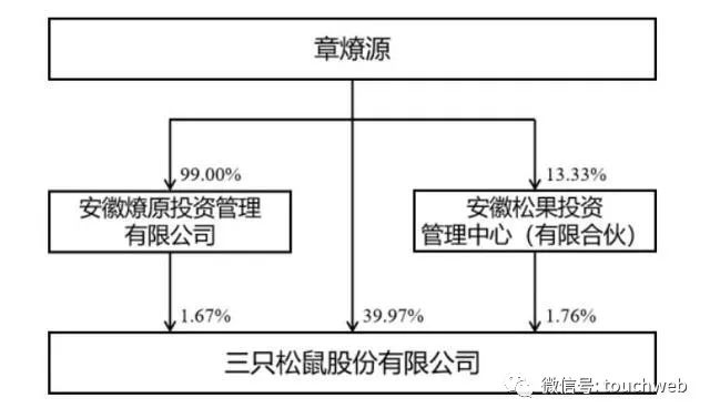 三只松鼠实际控制人章燎源为安徽燎原投资管理有限公司控股股东、实际控制人,为安徽松果投资管理中心(有限合伙)执行事务合伙人、控股股东、实际控制人;