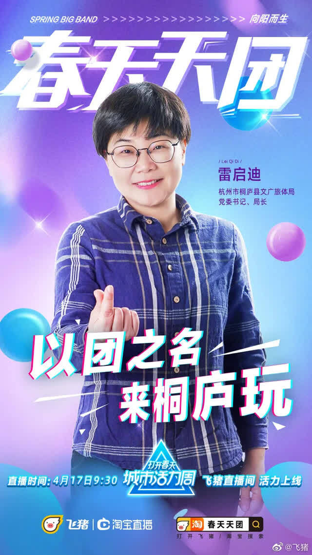 杭州市桐庐县文广旅体局党委书记、局长雷启迪直播带货,图源飞猪官方微博