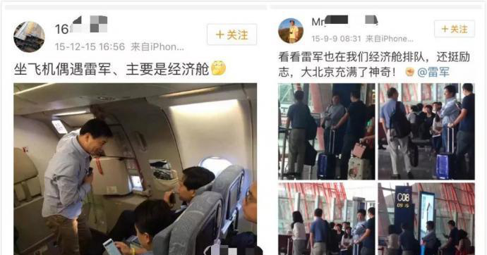 不知是不是因为有着类似的技术背景,另一位白手起家的大佬雷军,同样朴素得吓人。虽然坐拥超过600亿的身家,但雷布斯出场形象几乎都是T恤、牛仔裤搭配小白运动鞋,上班也会自己带饭,还曾经在飞机经济舱被网友偶遇,简直遮住脸就是妥妥一名普通程序猿的亚子。