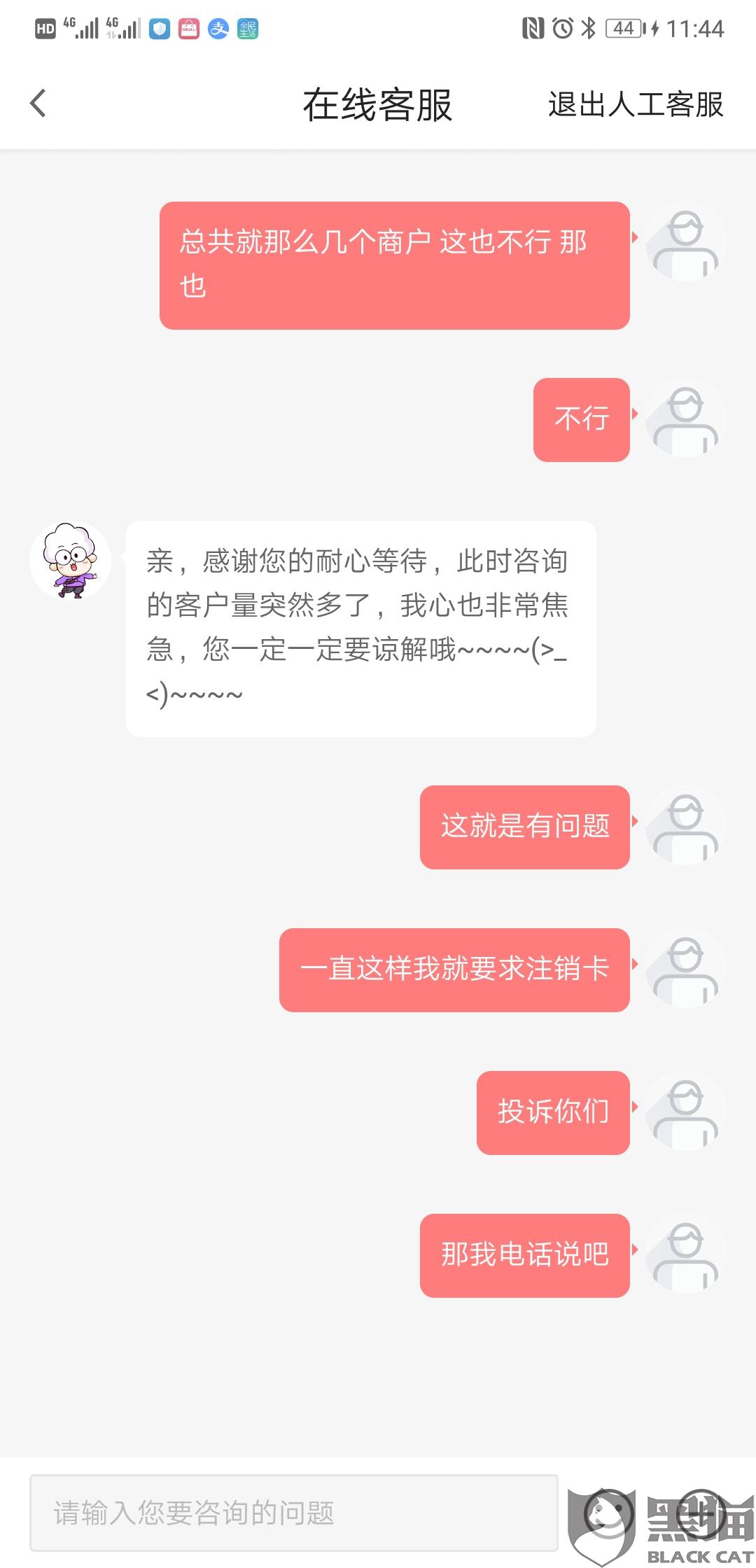 消费者“用户7406278427”在5月5日向黑猫投诉平台反映:“广发在我不知情情况 对我交易受限限制 现在线上支付也不行 今天去钱大妈 云闪付也不行 这下卡有什么意义 要求银行解封 不然去银监会投诉”