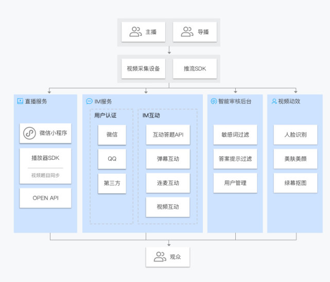 随着王思聪一条博文的呈现,以“冲顶大会”为首的知识竞赛类直播,已成行业新风口。而这背后,则是腾讯云快速稳定的技术支持,而腾讯云也立刻推出了一天接入的知识解决方案。