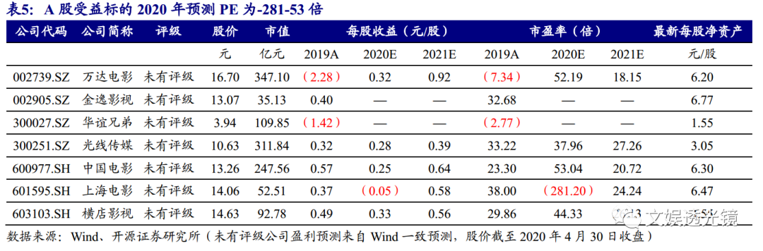 (2)线下娱乐恢复进度低于预期及影院复业时间晚于预期的风险:影院暂无明确复业时间表,影院复业时间点存在不确定性;疫情对于国内民众观影意愿的影响亦存在不确定性。