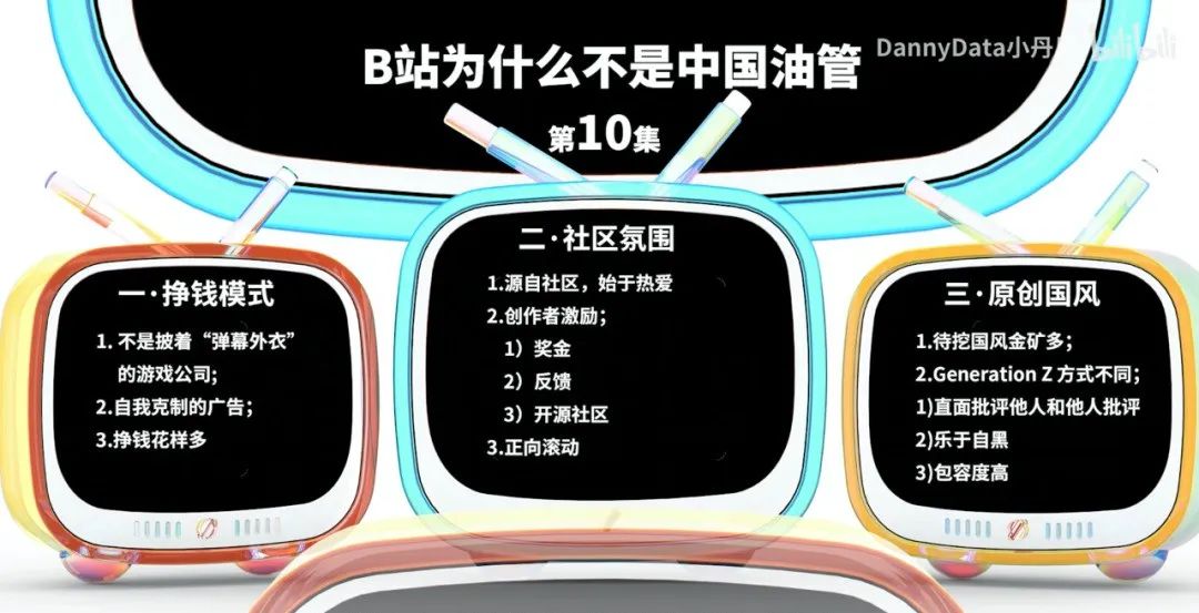 做个小结,B站为什么不是中国油管呢?第一点,挣钱模式;第二点,社区氛围;第三点,原创国风。