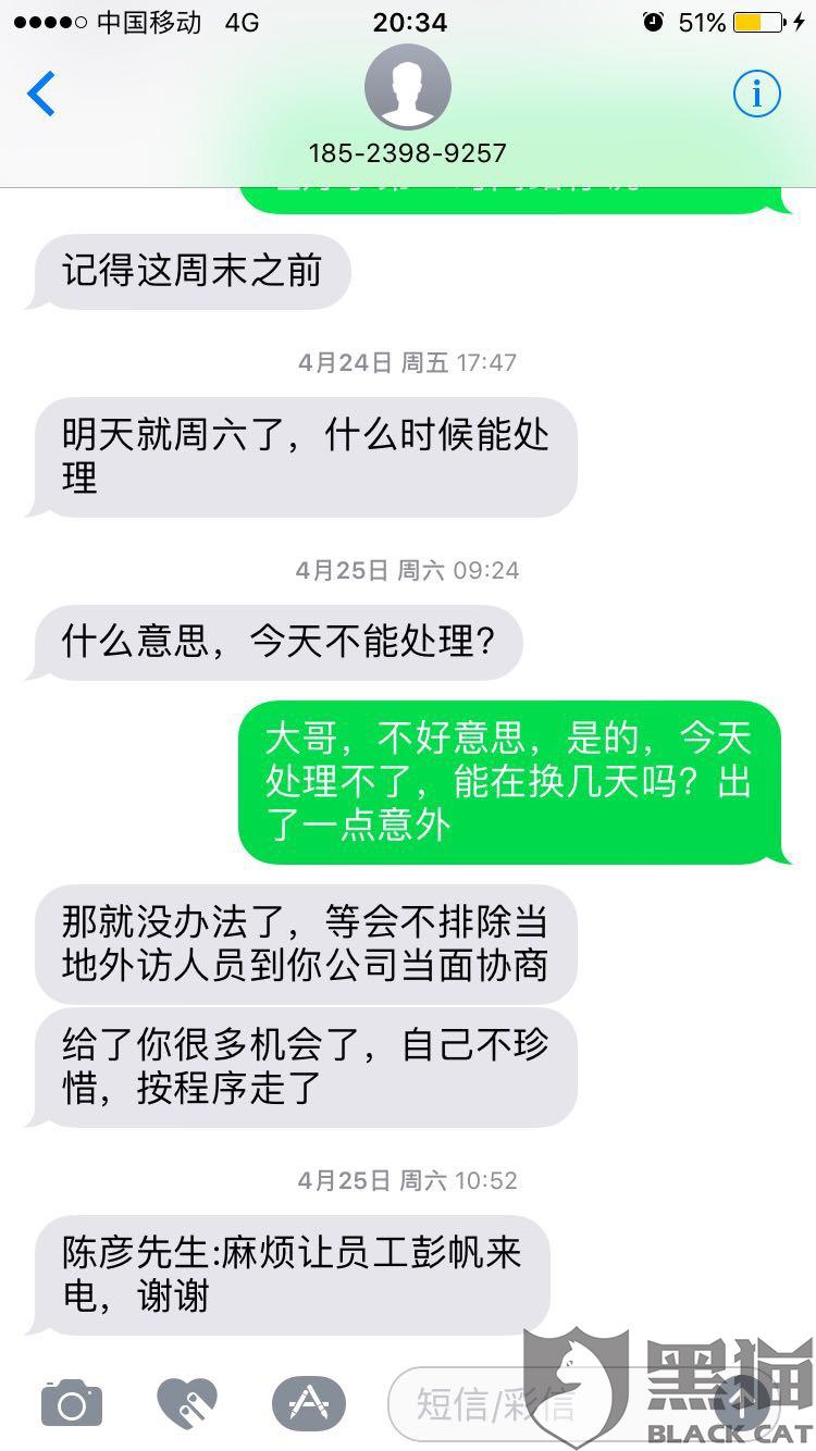 消费者“匿名”在5月7日向黑猫投诉平台反映:“因为一瓶,原因,我逾期2期,天天打电话抱我通讯录,经常威胁我要起诉我!要求把多余的利息利息立刻还到我的账户,并且撤销我的逾期记录!”