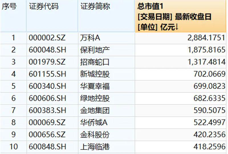 若以400亿元市值为标准,房地产行业符合条件的公司为10家。