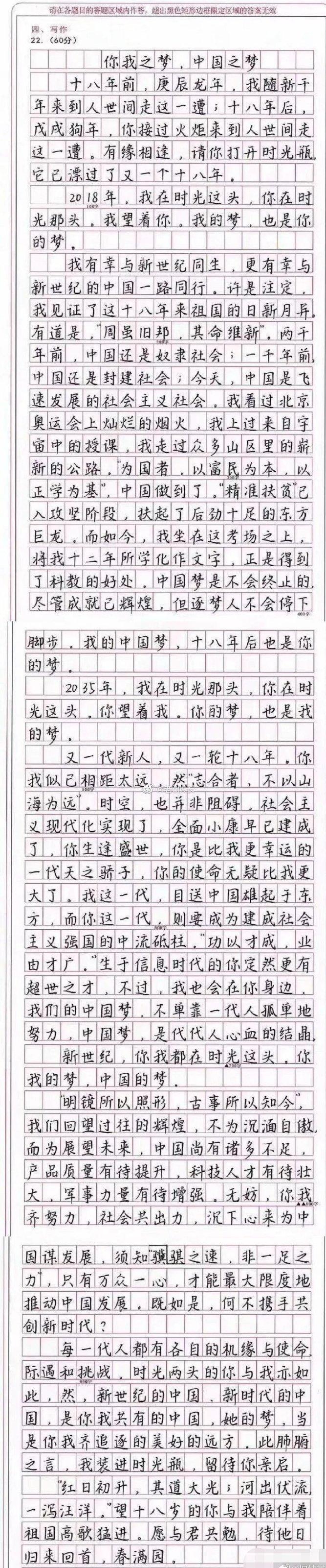 其中深圳高考状元的作文,无论是文采还是书写,都是十分完美的。