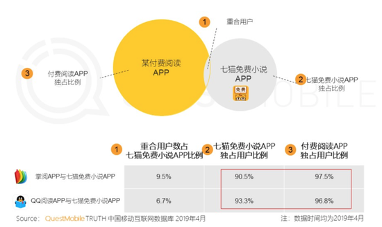 有行业人士表示,免费小说App用户和付费阅读App用户重合度不到10%。付费阅读主要面对一二线城市,有消费能力、更注重内容质量的用户,免费模式则下沉到三四五线城市甚至城镇乡村,通过降低用户体验大幅增加广告来换取免费用户,迅速深入下沉市场。