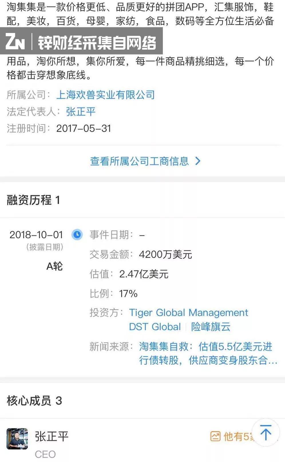 在互联网公司纷纷瞄准下沉市场的大趋势下,淘集集很快获得了头部资本的青睐,10月,淘集集公布第一笔A轮4200万美元的融资,由老虎基金、DTSGlobal、险峰旗云投资,估值达到2.42亿美元。