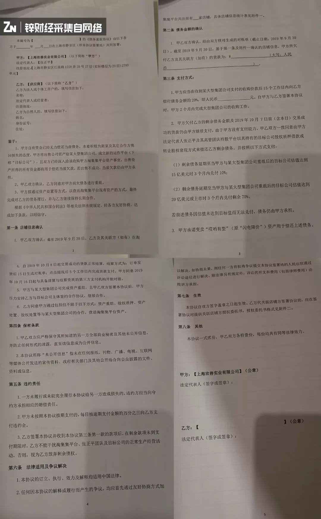 冯鹫告诉锌财经,这份最终的协议(债务重组协议)是他们8位商家代表和张正平一起拟定的。拟这份协议的时候并不轻松,如果要一句话形容就是,在极度紧张气氛的谈判桌上签下协议的。
