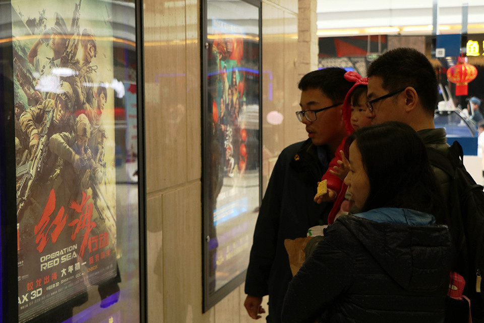 2018年2月18日,《红海行动》正在湖北宜昌某影院上映,影厅持续爆满。春节档影片一直是各线城市影院票房的重心。2019年,春节档影片票房占据内地电影总票房的六分之一左右。(IC photo/图)