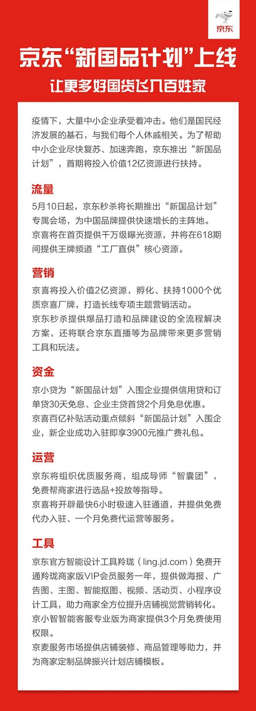 新国品计划搭载京东多年来锻造的供应链、物流、技术、服务等核心能力,或再为京东抗疫行动增添案例范本。