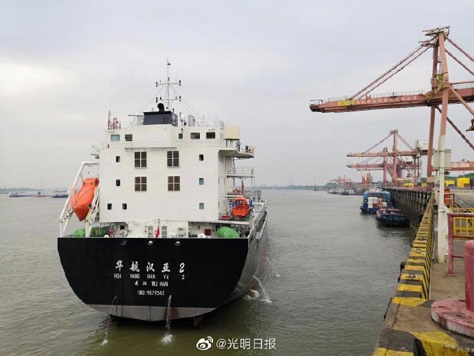 有序复工复产5月9日17时30分,华中港航集团“华航汉亚2”轮,装载着医用纱布等防疫物资及化工品、日常用品离开武汉新港阳逻港码头,通江达海前往日本,将于5天后抵达第一站神户港,然后停靠大阪和名古屋港。 武汉至日本集装箱江海直航航线,是长江中上游地区首条真正意义上的对外直达班轮航线。由“华航汉亚1”和“华航汉亚2”轮执行班轮化运行,往返时间14天,每周一班,靠泊日本神户、大阪、名古屋。“点对点”周班直航,标志着武汉疫情防控取得阶段性胜利,武汉又拓展一条对外贸易的新通道。(光明日报全媒体记者张锐 通讯员潘庆芳 、马日福)