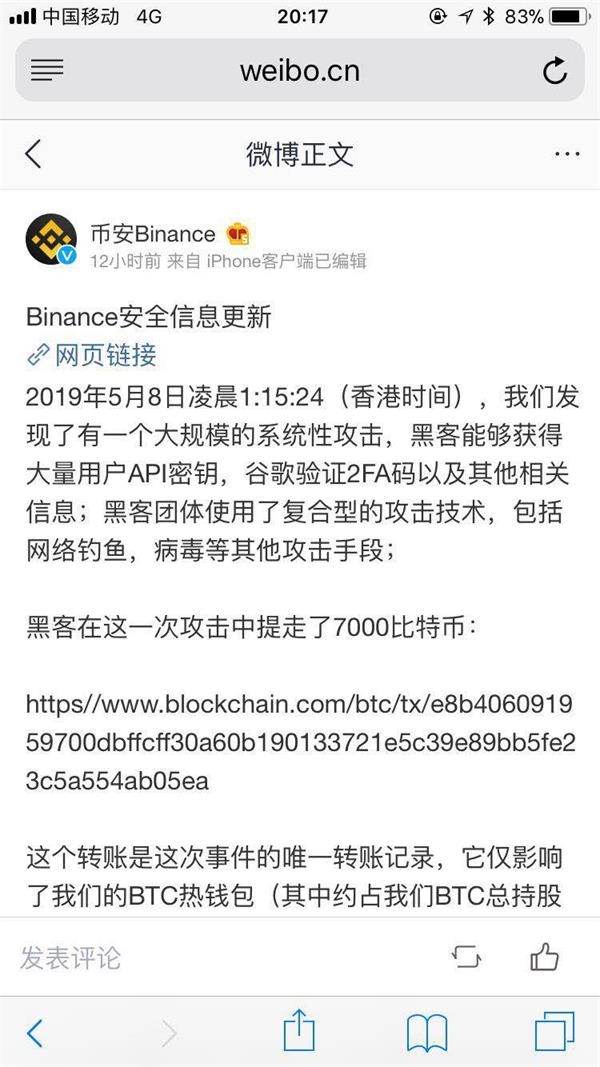 全球第二大区块链代币交易所币安(Binance),首次公开承认比特币被盗。