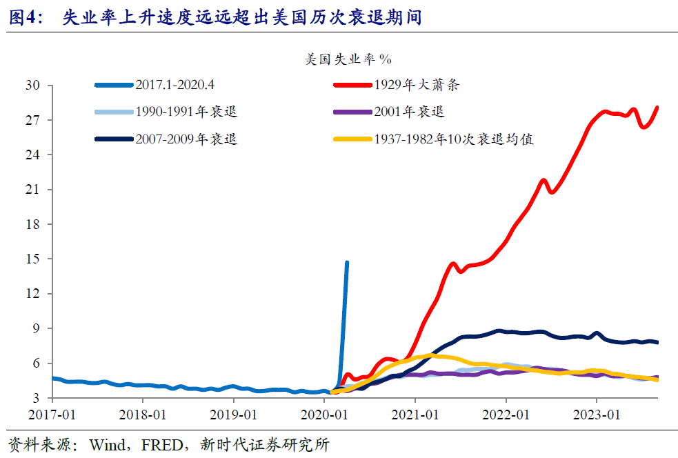 (2)暂时性失业居多,供给能力恢复没有太大问题。美国失业人数中绝大部分为暂时性失业,在企业重新开工后,一部分失业人员会重新返回岗位,有利于经济供给能力恢复。