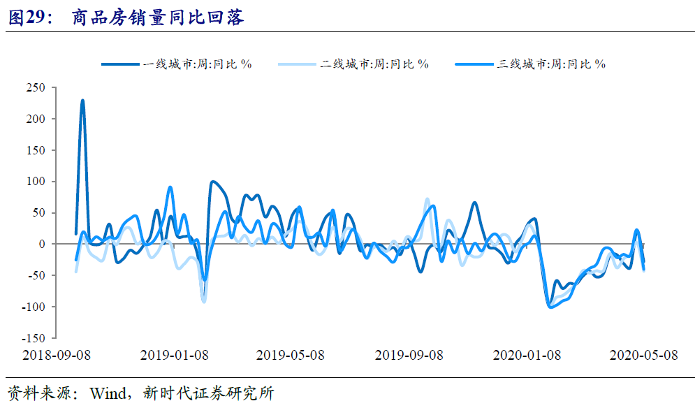 商品房销量同比回落。上周,30大中城市商品房日均销售面积从49.1万平米下降至31.5万平米。30大中城市商品房销售面积同比增速从12.1%回落至-39.4%,其中,一、二、三线城市商品房销售面积同比分别下降27.7%、43.2%、40.2%。
