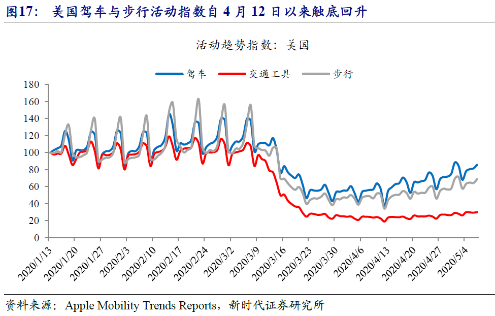 疫情之下,局势瞬息万变,我们可以通过一些高频数据来跟踪未来一段时间美国经济修复进程,如下表和下图所示: