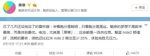 客观来说,黄章不是没有想过改变,他甚至学习起了雷军的营销术,并试图以此发动反击。2014年,首次复出归来的黄章,喊出的口号是“全线迎战小米”,他将小米对于魅族的优势定义为营销取得的成功。他在魅族社区和微博上写下:“和老罗小米比炒作,我肯定输。要是比做产品,我可以秒他们几条街”。