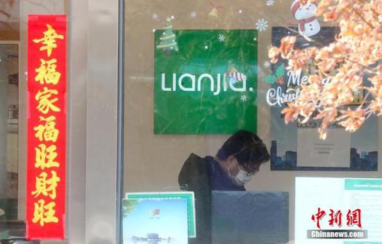 资料图:2月19日,北京市丰台区一家房地产经纪公司员工在门店前台工作。受新冠肺炎疫情影响,实地看房人数减少。中新社记者 张宇 摄