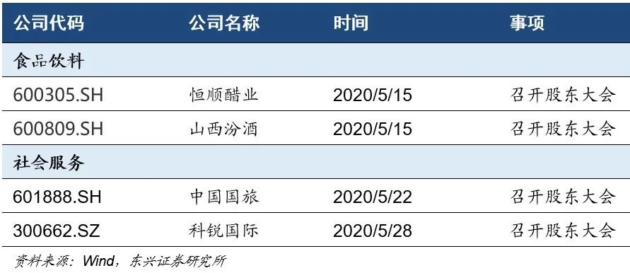 旅游方面,5月8日,国务院联防联控机制印发了《关于做好新冠肺炎疫情常态化防控工作的指导意见》,提出在落实防控措施的前提下,全面开放商场、超市、宾馆、餐馆等生活场所,以预约、限流等方式开放密闭式娱乐休闲场所等,室内旅游场所有望恢复正常开放。上海迪士尼乐园将于5月11日起重新开放。我们认为随着国内疫情早于全球得到控制,室内旅游场所将逐步恢复正常开放,宋城演艺有望在限流的条件下复园。旅游业将在节假日催化下加速回暖,国内游替代出境游将成全年趋势。