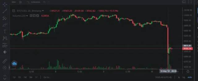 “21世纪经济报道”消息,据虚拟货币交易所Bitstamp.net显示,北京时间5月10日早上8点开始,比特币单价在半小时内从9500美元价位瞬间下跌了上千美元,最低价格跌破8200美元,最高价差超1400美元。