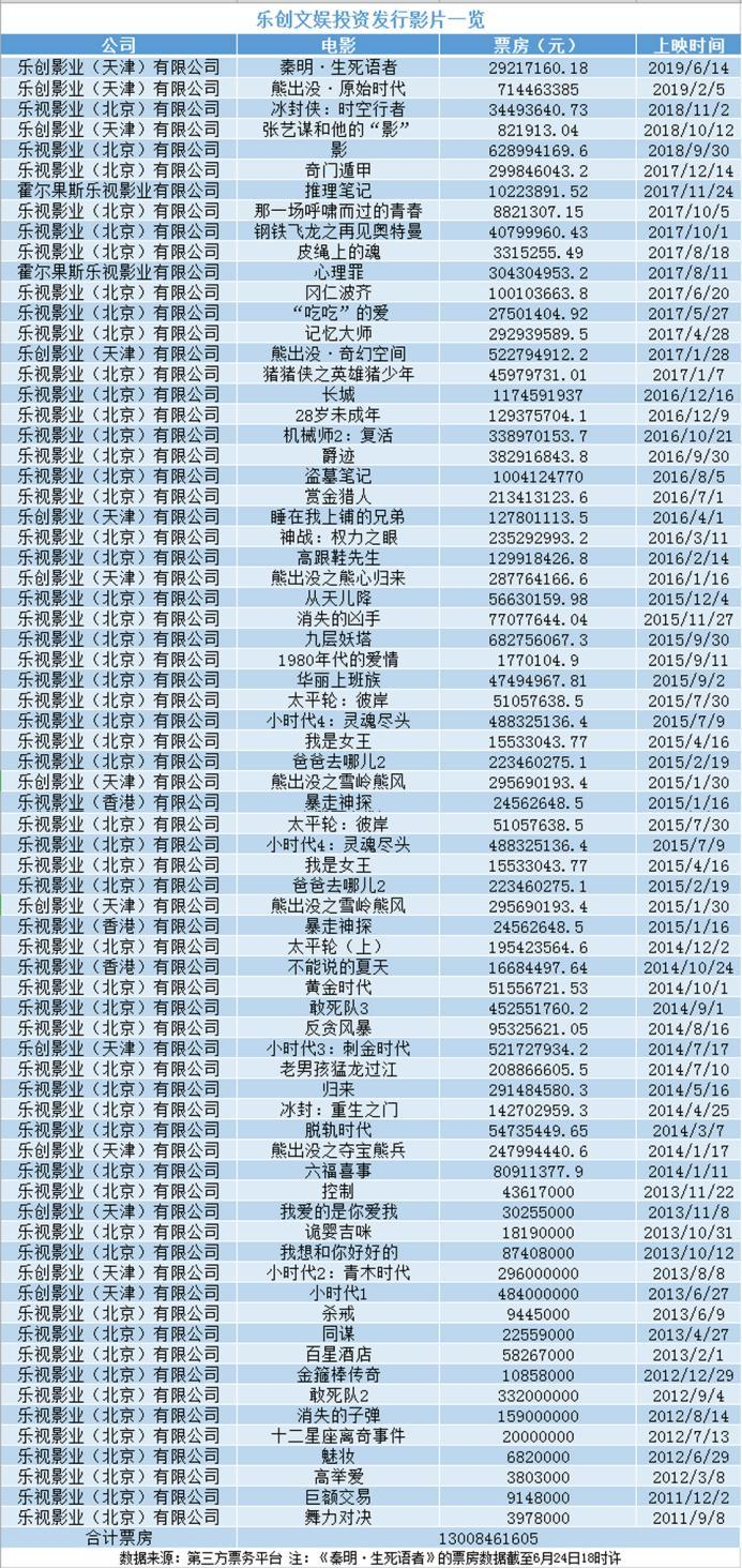 乐创文娱从2011年成立以来,参与投资发行的影片。截至2019年6月24日,在张昭的带领下,乐创文娱先后通过旗下公司参与的影片有66部,合计票房高达130.08亿元。