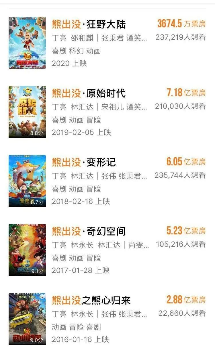 “熊出没”系列是张昭打造品牌化、系列化影片的最好案例 图片来源灯塔专业版