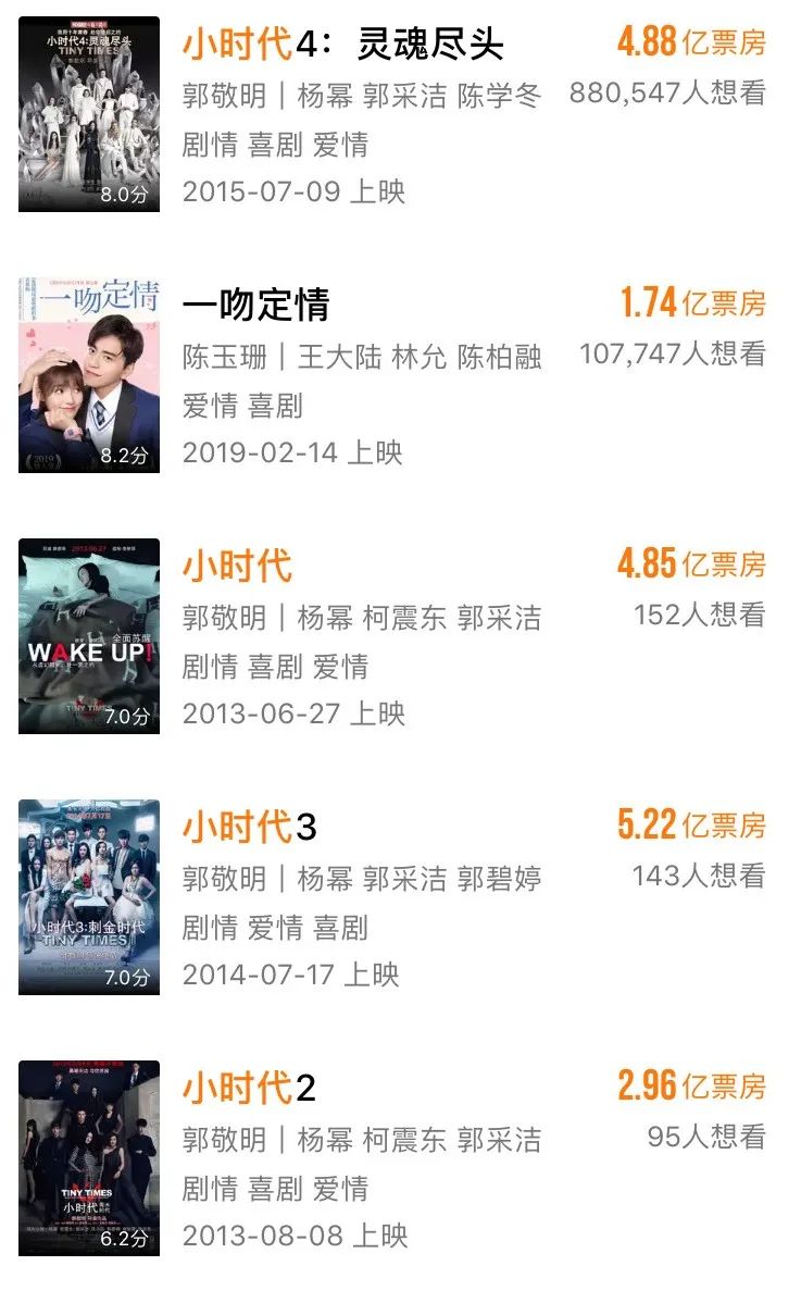 4部小时代总票房达17.91亿 图片来源:灯塔专业版