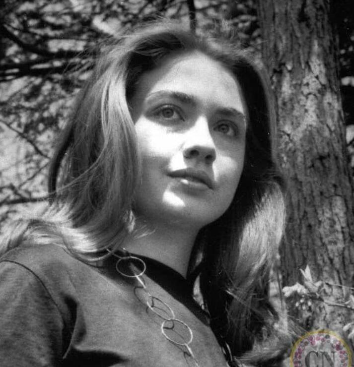 希拉里年轻时颜值是非常高的,那个时候的她留着长发,五官和气质都是如此的完美和纯粹,仰拍的角度都如此好看,希拉里这完美的下颌线,大卷发显得非常自然,清纯的眼神中又包含着坚定,整个人十分简单和纯真。