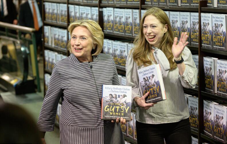 希拉里年轻的时候长发飘飘,十分迷人,即使年纪大了,颜值气质依旧能打,只可惜她的女儿切尔西越长越随意,丝毫并没有遗传到希拉里的美貌。之前,希拉里母女俩曾经一起出席她们的新书《勇敢女人之书》签售会,两人面对镜头开心大笑,可见心情大好。这次母女两人同样穿着条纹上衣,就连色彩都很统一的采用了灰、咖等中性色调,以彰显自身的知性气质。