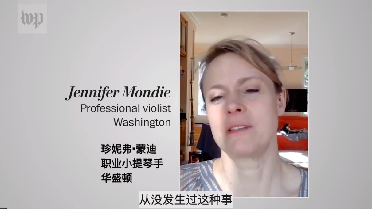 珍妮弗·蒙迪是华盛顿一家乐团的职业小提琴手。此前,乐团每周会在一起排练三天,准备周四到周六的演出。但是现在,他们没有了演出的机会。