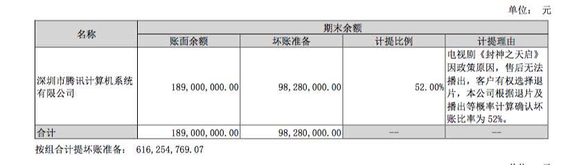 由张睿、李曼、刘学义等主演《封神之天启》也已经被腾讯退片。由于《封神之天启》被退片,欢瑞世纪计提了近一亿的坏账。