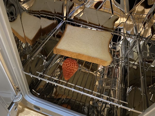 这款消毒柜是经过了广微验证的,但验证的是紫外线杀菌能力,大于99%的结果仅能代表实验室试验环境下它的杀菌能力,在日常使用中它效果怎么样呢?这次我们用“草莓”和“面包片”来测试看看。