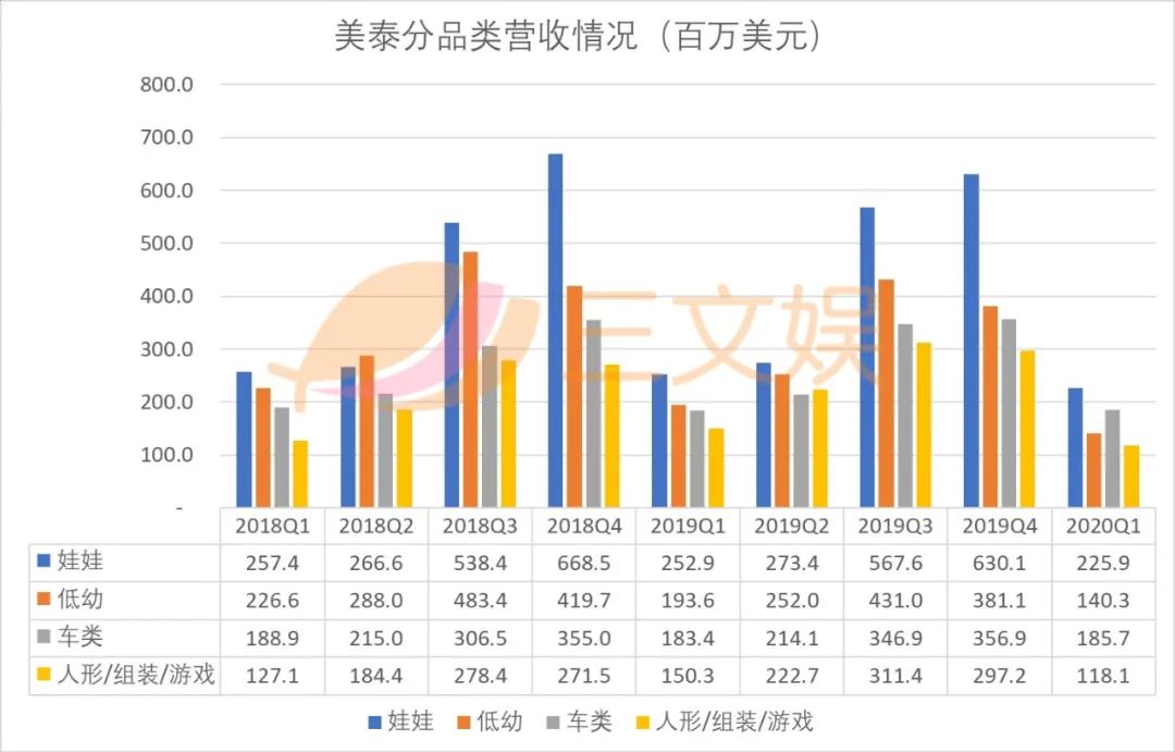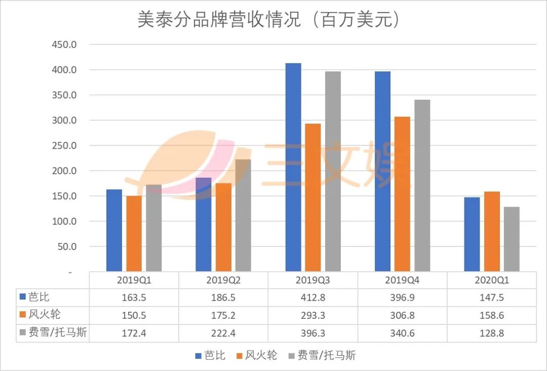 美泰的4条产品线,3大品牌基本都受到疫情影响,出现了不同程度的下滑。