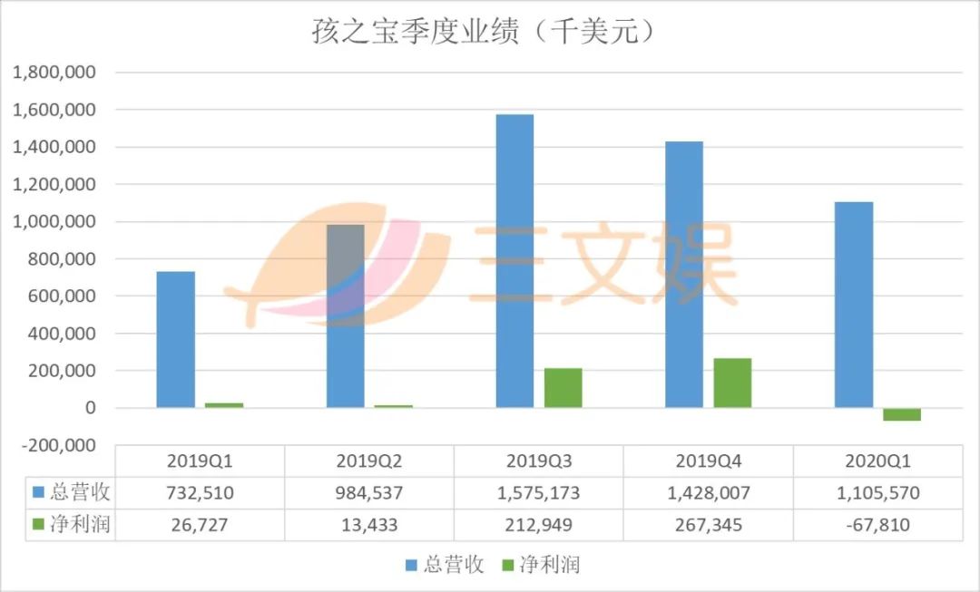 先看玩具类的业务,活动/游戏/毛绒类玩具同比增长24%,创造了7810万美元的收入,桌游类产品一季度是集体增长,这一点我们在上文提到过了。男孩/建造类玩具增长同比增长19.6%,营收达到了5910万美元。