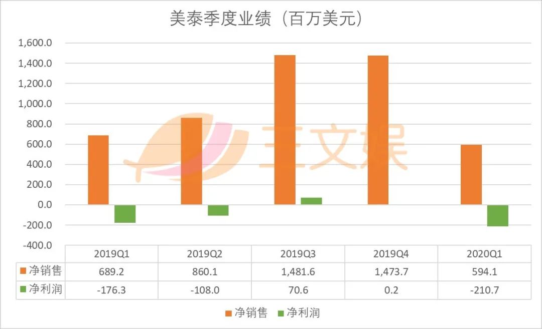 美泰一季度总销售额6.7亿美元,同比下滑14%;净销售额5.94亿美元,也同比下滑14%;净亏损2.1亿美元,亏损较去年同期有所扩大;期内经营性现金流净流出1.74亿美元,较去年同期有所收窄;期末现金及现金等价物4.99亿美元,较去年同期增长31.38%。
