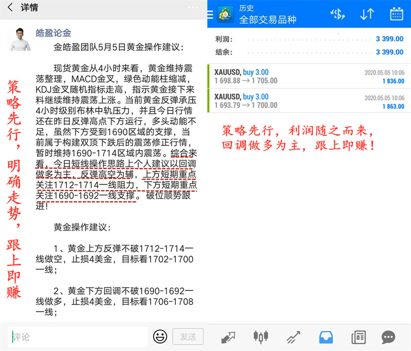 早间策略给出反弹做空为主,早间金价自1683附近开始反弹,早间反弹1691附近做空,1685附近获利出局,多单进场,止盈1690,多单成功止盈,美盘初请数据出来,皓盈在各大财经网站更新现价单,98附近做空,止盈1694,空单成功止盈,跟上的朋友利润也是稳入囊中!文章全网可查,不做马后炮!你是否还处于亏损?不如跟上皓盈的步伐!